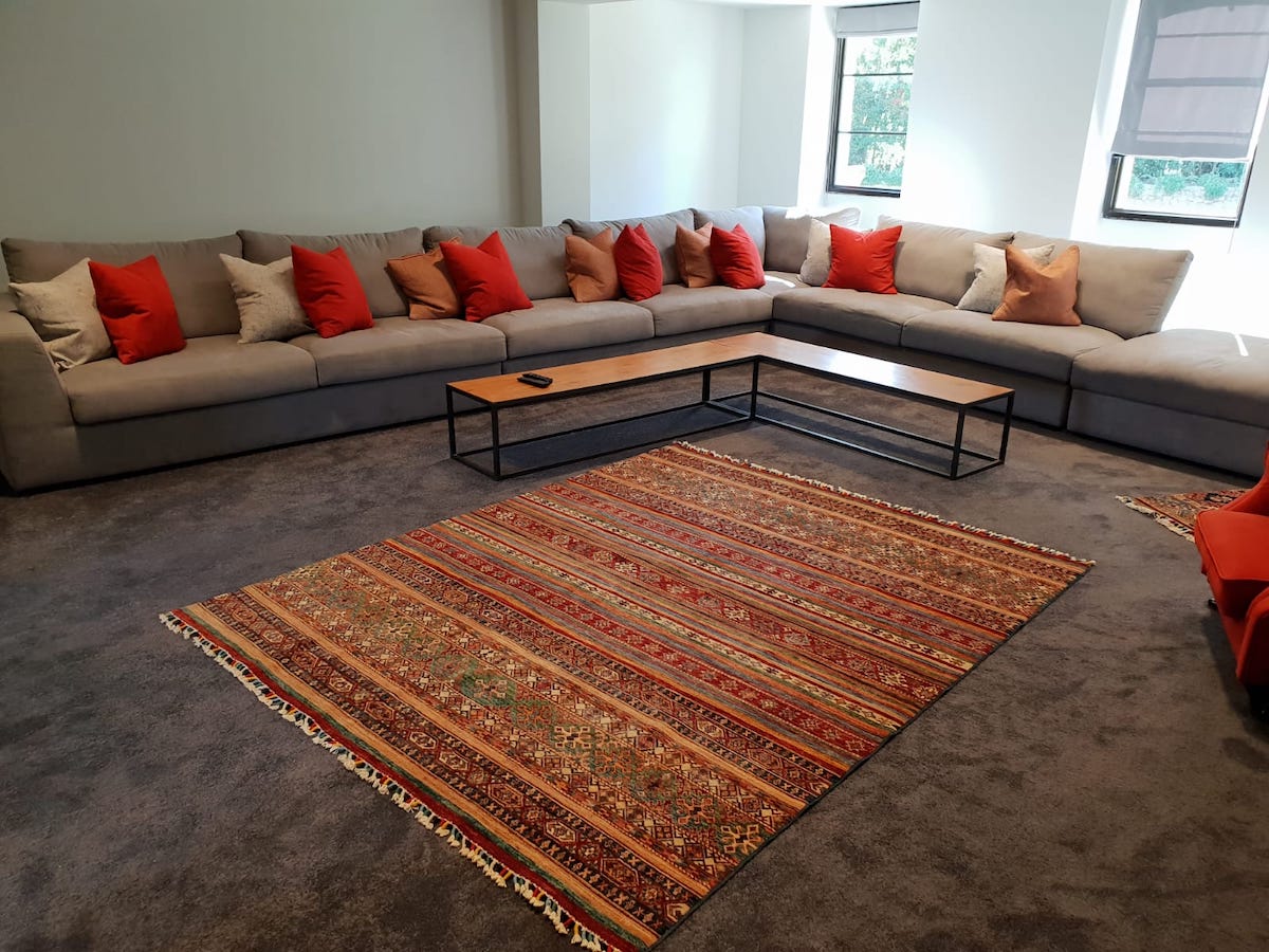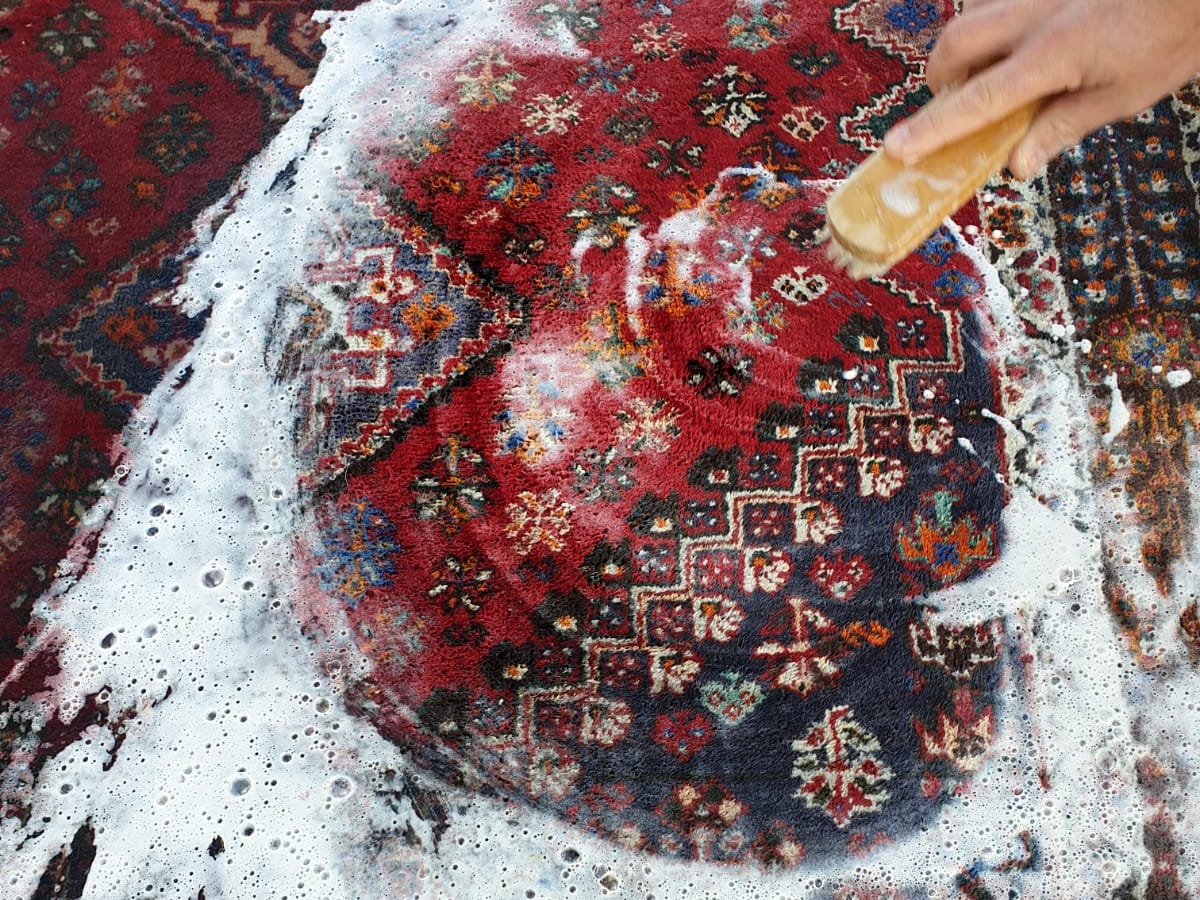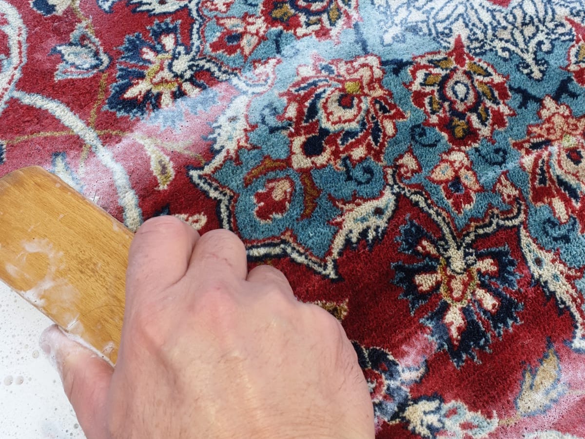 Nous procédons à un dépoussiérage, un lavage avec des produits naturels, un rinçage. Durant le procédé, des méthodes de fixation des couleurs permettent d'en conserver leurs pigments. Pour terminer, le brossage et peignage accordent au tapis de retrouver sa forme orginale.